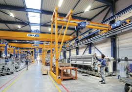 Équipements fixes de levage utilisés pour la manutention de charges lourdes en milieu industriel.